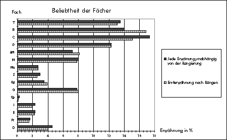 Die Befragten hatten die drei beliebtesten Fächer in der Rangreihenfolge 1., 2. und 3. anzugeben. Alle anderen Fächer wurden also auf diese Weise nicht berücksichtigt.