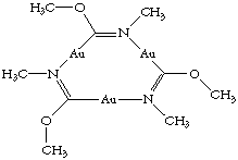 Alan Balch de l'Université de Californie à Davis a découvert une étrange molécule cyclique contenant 3 atomes d'or Au et trois groupes C=N (Angewandte Chemie 36, p.1179, 1997). Elle forme des cristaux incolores insolubles dans l'eau, mais soluble dans le chloroforme.