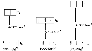 For the complex [Cr(OH2)6 ]3+ a good statement to explain the low catalytic power is due to the removal of the electron on H2O2 which disturbs the symmetrical electron distribution in the t2g orbitals. In relation to the complex [Cu(OH2)6]2+, the comparative minor energy of t2g in [Cr(OH2)6 ]3+ , is probably insufficient to neutralize this effect.