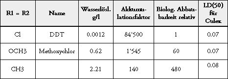 Chronische Vergiftungen sind trotz der während des Krieges bei Millionen von Personen durchgeführten DDT-Prophylaxe beim Menschen nicht bekannt geworden5.